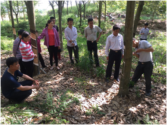 此次培訓(xùn)采取理論與實(shí)際操作相結(jié)合的方式,農(nóng)場割膠總輔導(dǎo)員許安樂針對橡膠開割樹的管理和常見病害治療等方面開展詳細(xì)的講解,到橡膠園開展磨刀技能和割膠技術(shù)現(xiàn)場指導(dǎo),對學(xué)員在割膠操作過程中存在的不規(guī)范動作一一予以糾正。通過此次復(fù)訓(xùn),有效提高了職工科學(xué)管理橡膠園的水平,為今年干膠的高產(chǎn)穩(wěn)產(chǎn)奠定了基礎(chǔ)。